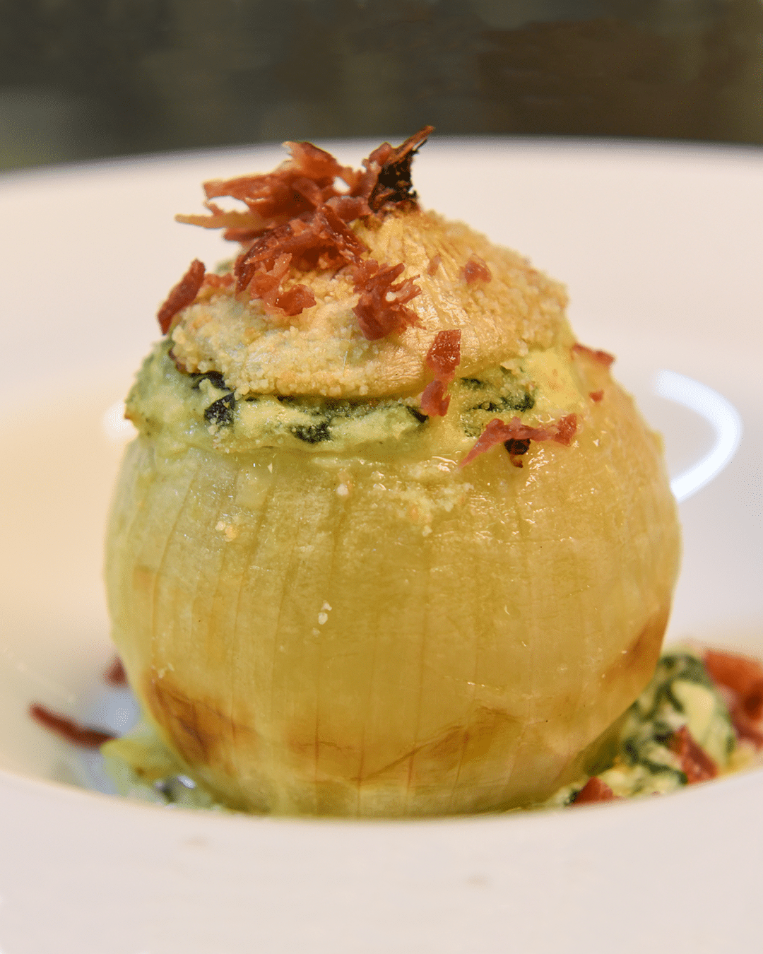 Dieses Rezept wurde von der italienischen Chefköchin Laura Marciani kreiert, die uns gefüllte im Ofen gebackene Zwiebeln mit Prosciutto di San Daniele serviert.
