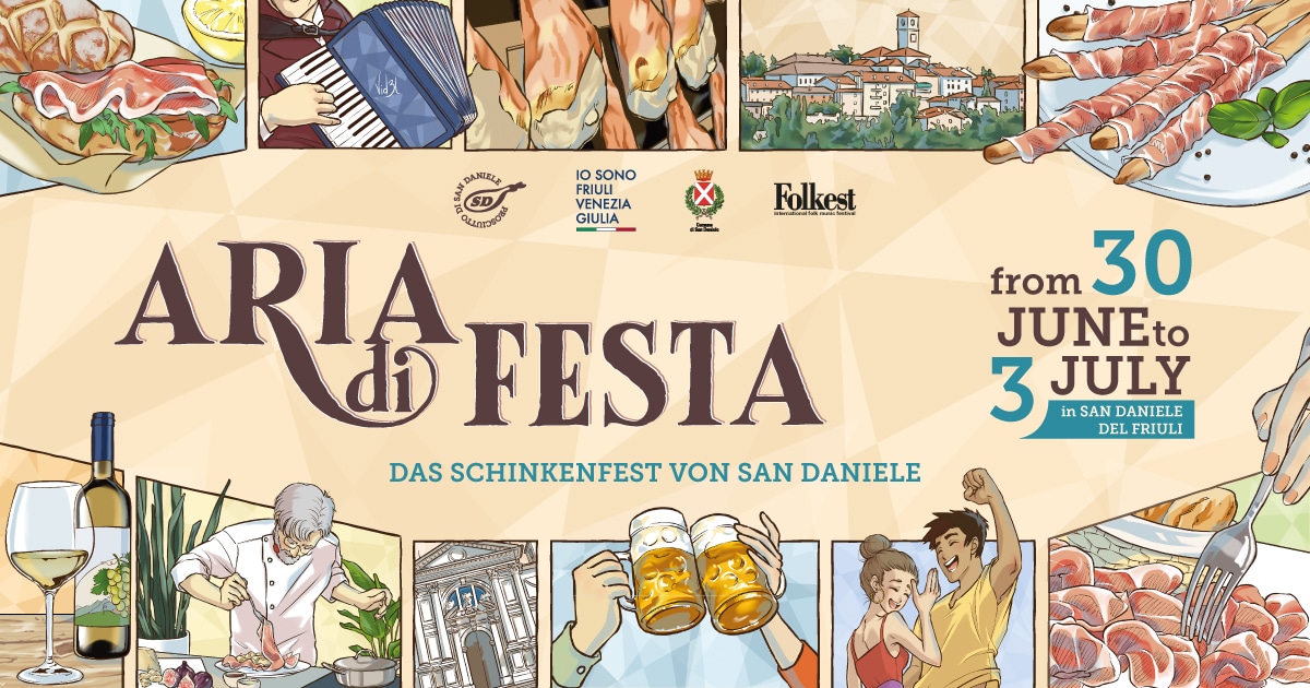 The Consorzio del Prosciutto di San Daniele and the City of San Daniele of Friuli announce the 37th edition of Aria di Festa. After stopping in 2020 and 2021 and after last year’s Aria di Friuli Venezia Giulia formula, the food and wine festival returns to its traditional location from 30 June to 3 July 2023.